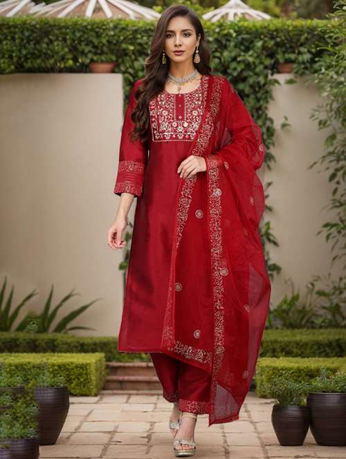 - » maroon three quarter sleeve suit set