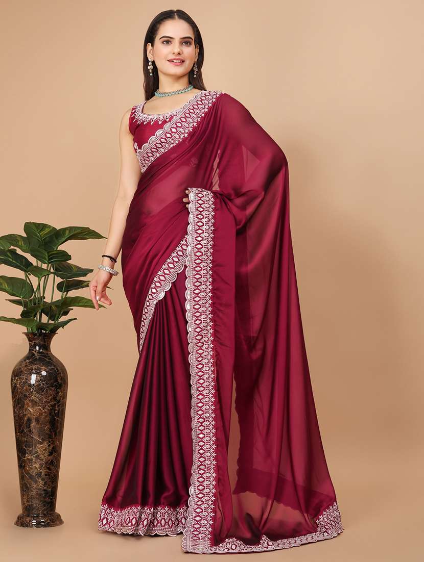 - » maroon silk bordered saree with blouse