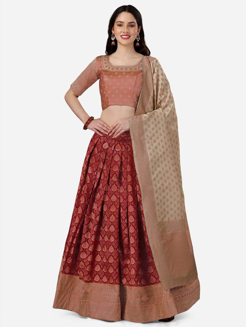 - » maroon self design flared lehenga
