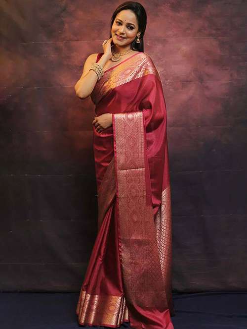This vibrant Maroon Banarasi saree features intricate weaving, combining traditional elegance with a touch of modern artistry. Crafted from luxurious lichi Banarasi silk, it offers a soft, glossy texture and a graceful fall, ensuring both style and comfort throughout the day. The saree comes with a matching unstitched lichi Banarasi silk blouse piece, allowing you to create a blouse that perfectly suits your personal style. Ideal for festive gatherings, cultural events, or evening celebrations, this saree makes a striking and elegant statement.