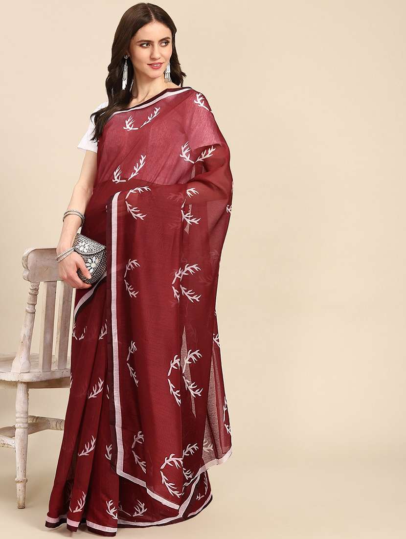 - » women's quirky maroon colored saree with blouse