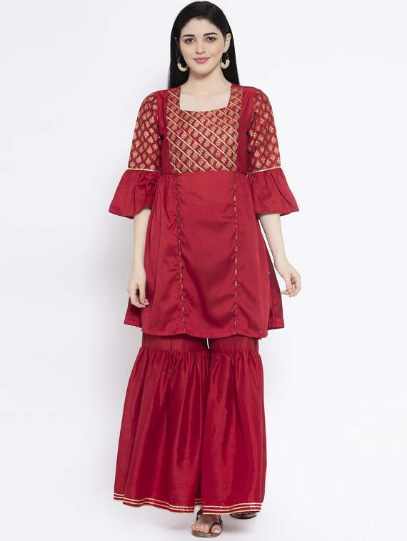 gold print a-line kurta