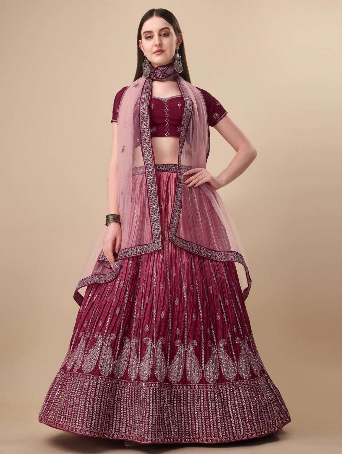- Are you ready to adorn some alluring lehengas this season? Well, gear up to look gracious as LimeRoad brings to you the most magnificent collection of lehengas from Vaidehi Fashion and in pink colours.