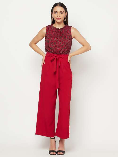 tie front printed full leg jumpsuit
