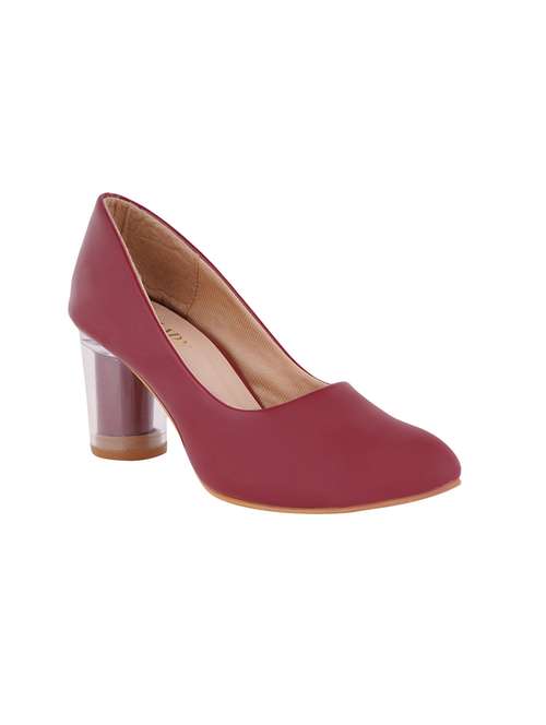 maroon leatherette slip on pumps
