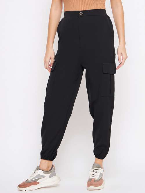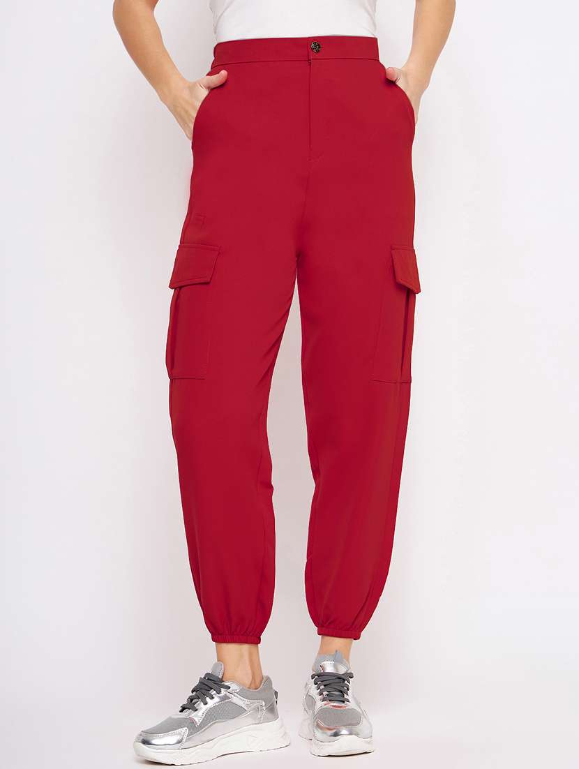 - » women maroon solids cargos trouser