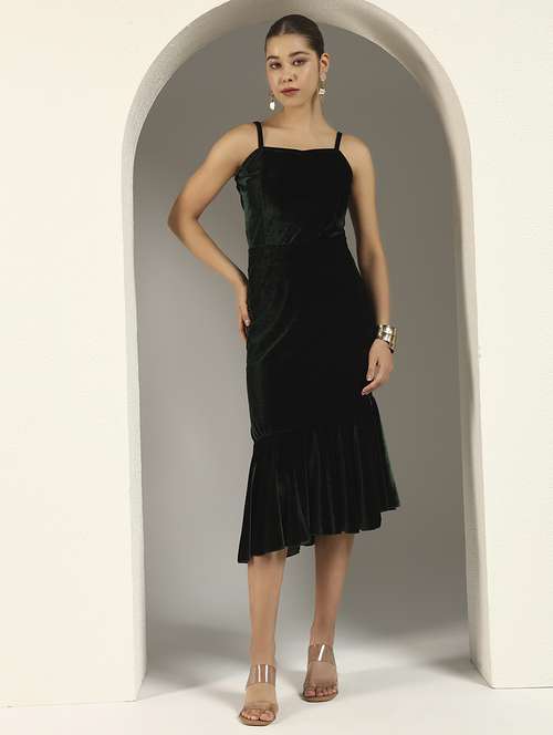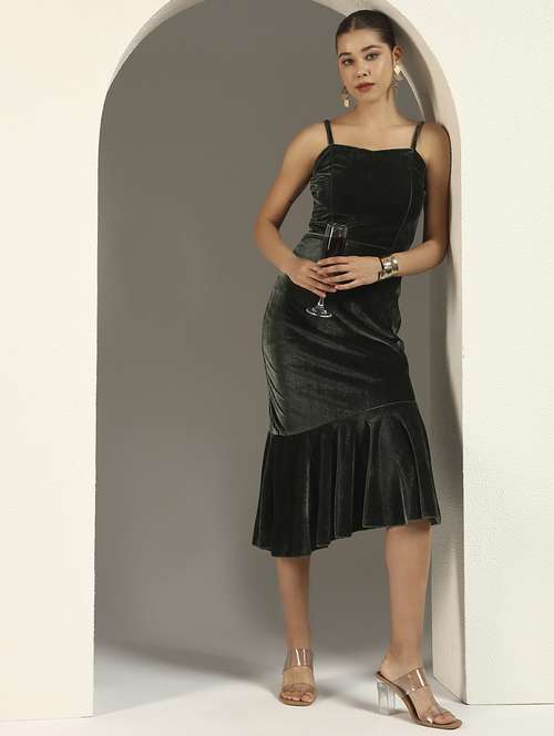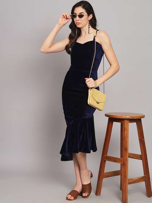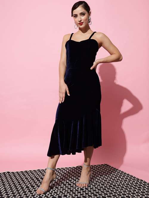 - Dress up in a soothing pattern and don this dress made of velvet material.