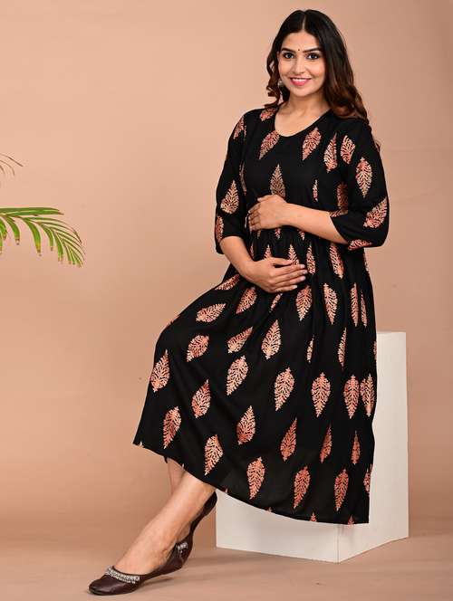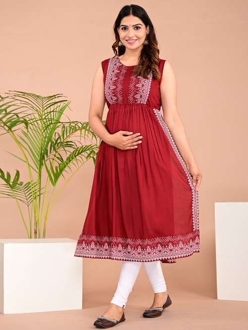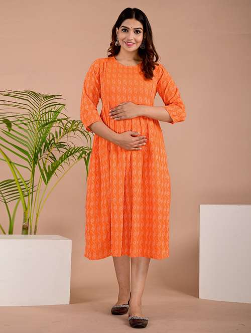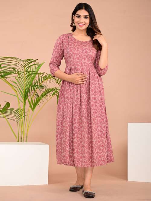 - » women round neck printed maternity wear kurta