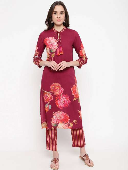 - » women floral mandarin neck kurta pant set