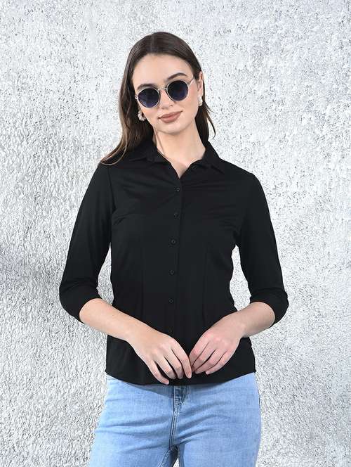 - » women solid collared three quarter sleeve shirt