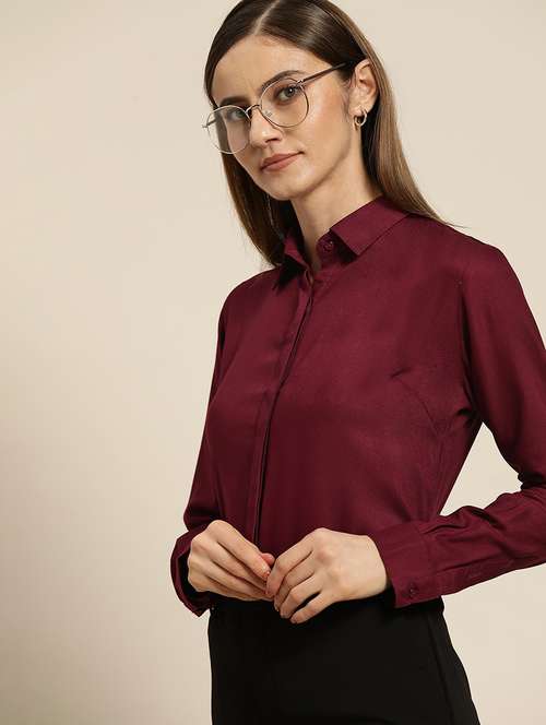 - » women solid collared long sleeve shirt