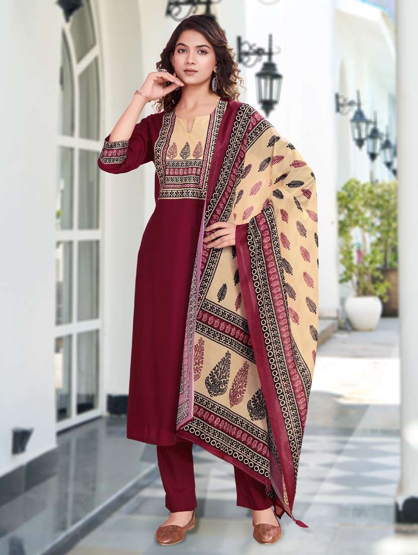 - Find gorgeous sets of ethnic wears in trending designs in maroon colors suitable for casual wear of occasions.