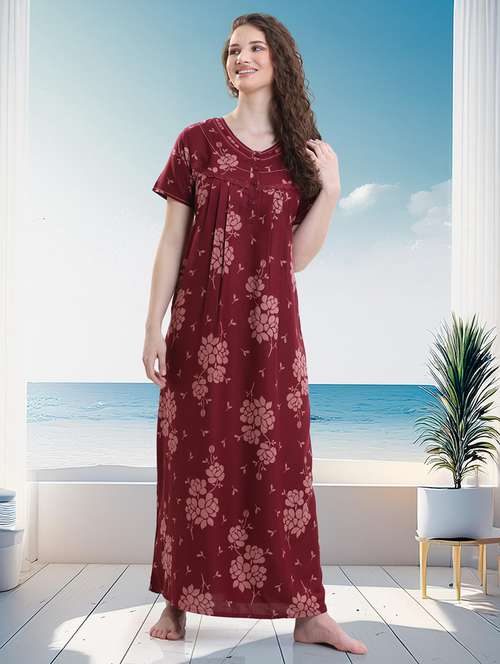 Quira Women's Viscose Polyester Printed Nighty - Half Sleeves, Round Neck, Full Length