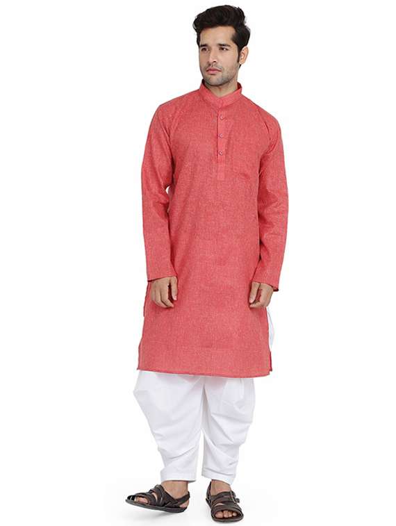 men solid mandarin neck dhoti kurta ethnic wear set - 22000625 - Very Small Image - 1
