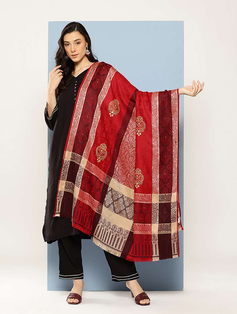 women self design reversible shawl - 22033719 - Very Small Image - 1
