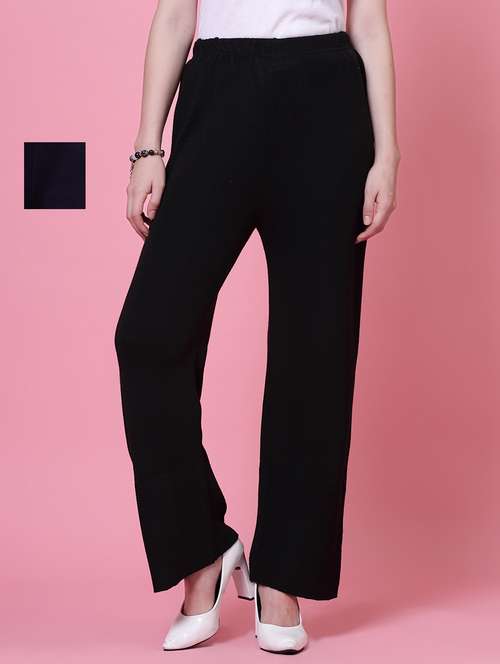 Thsi Solid Woollen Palazzo has elasticated waistband and slip-on closure