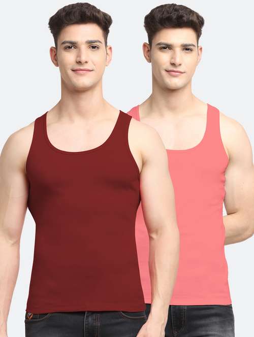 set of 2 solid cotton vest
