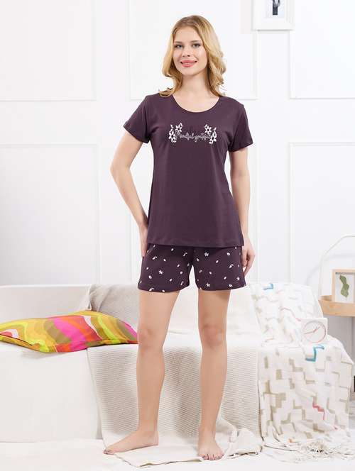 - » women printed nightwear shorts set