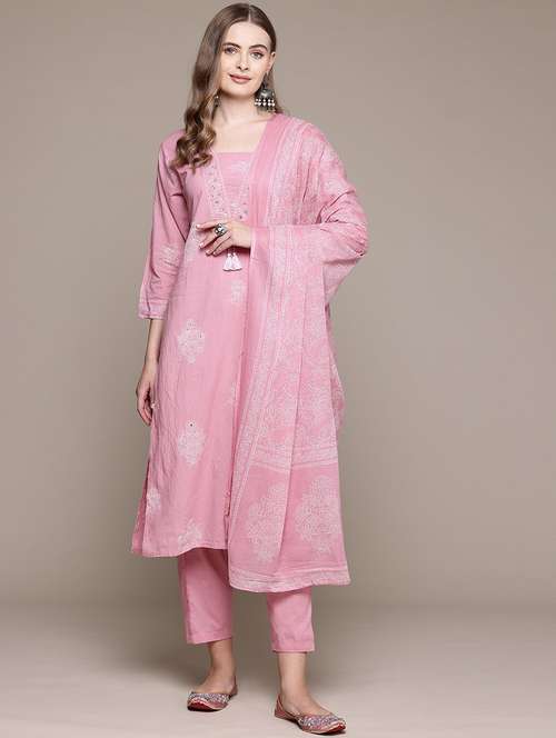 - Find gorgeous sets of ethnic wears in trending designs in pink colors suitable for festive wear of occasions.
