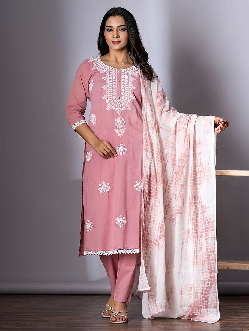 • Find gorgeous sets of ethnic wears in trending designs in pink colors suitable for festive wear of occasions.