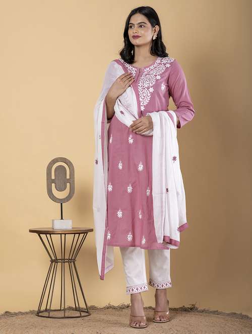 women three quarter sleeve kurta pant with dupatta set - 22058343 - Very Small Image - 1