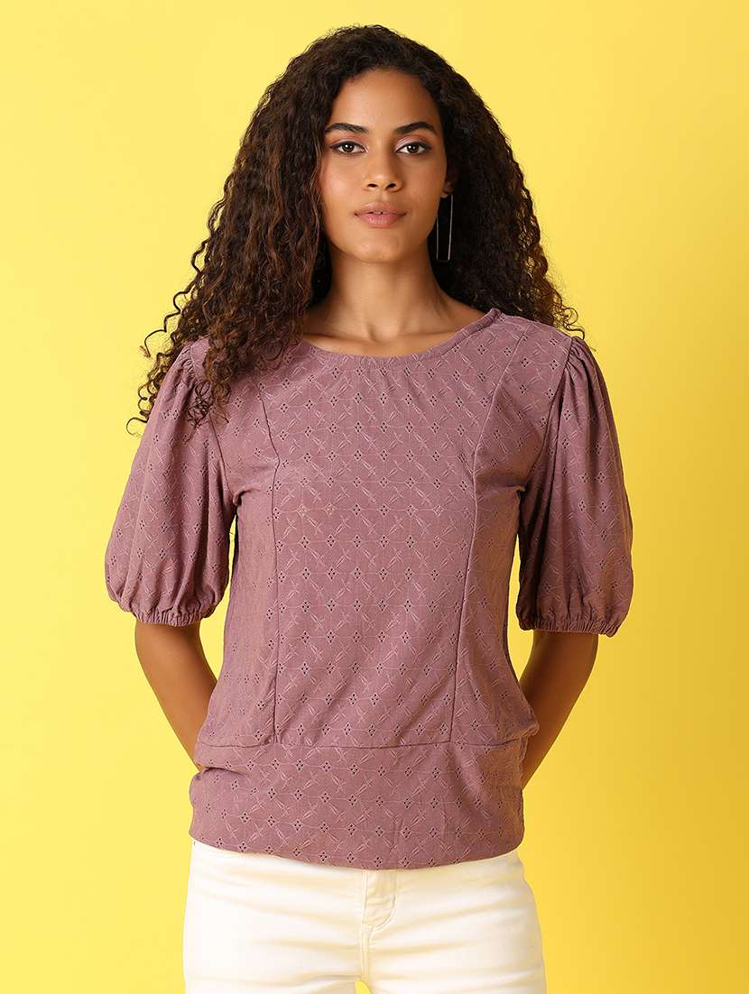 - » women soli cut out detailed puff sleeves top