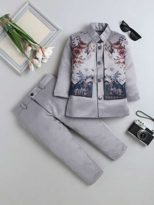 boys printed long sleeve sherwani set