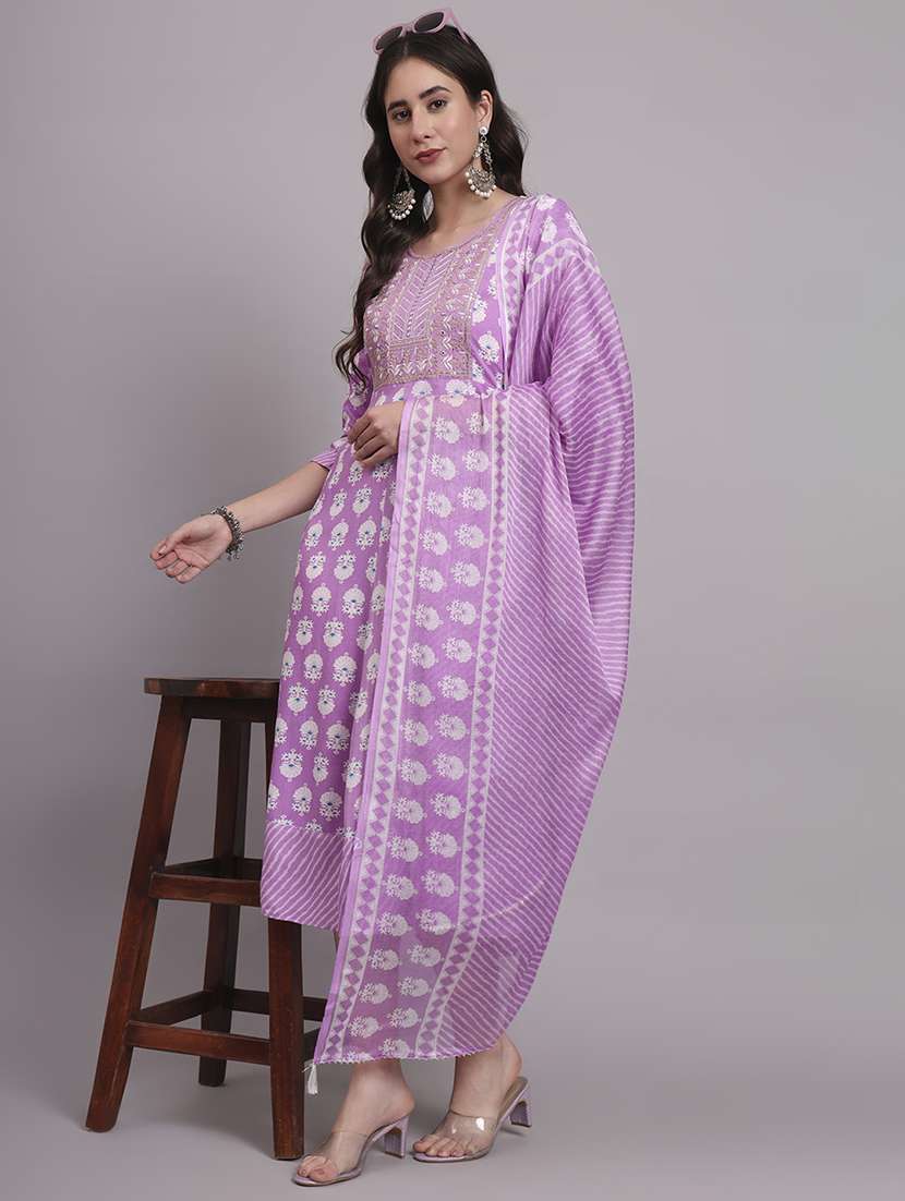 - Find gorgeous sets of ethnic wears in trending designs in lavender colors suitable for casual wear of occasions.
