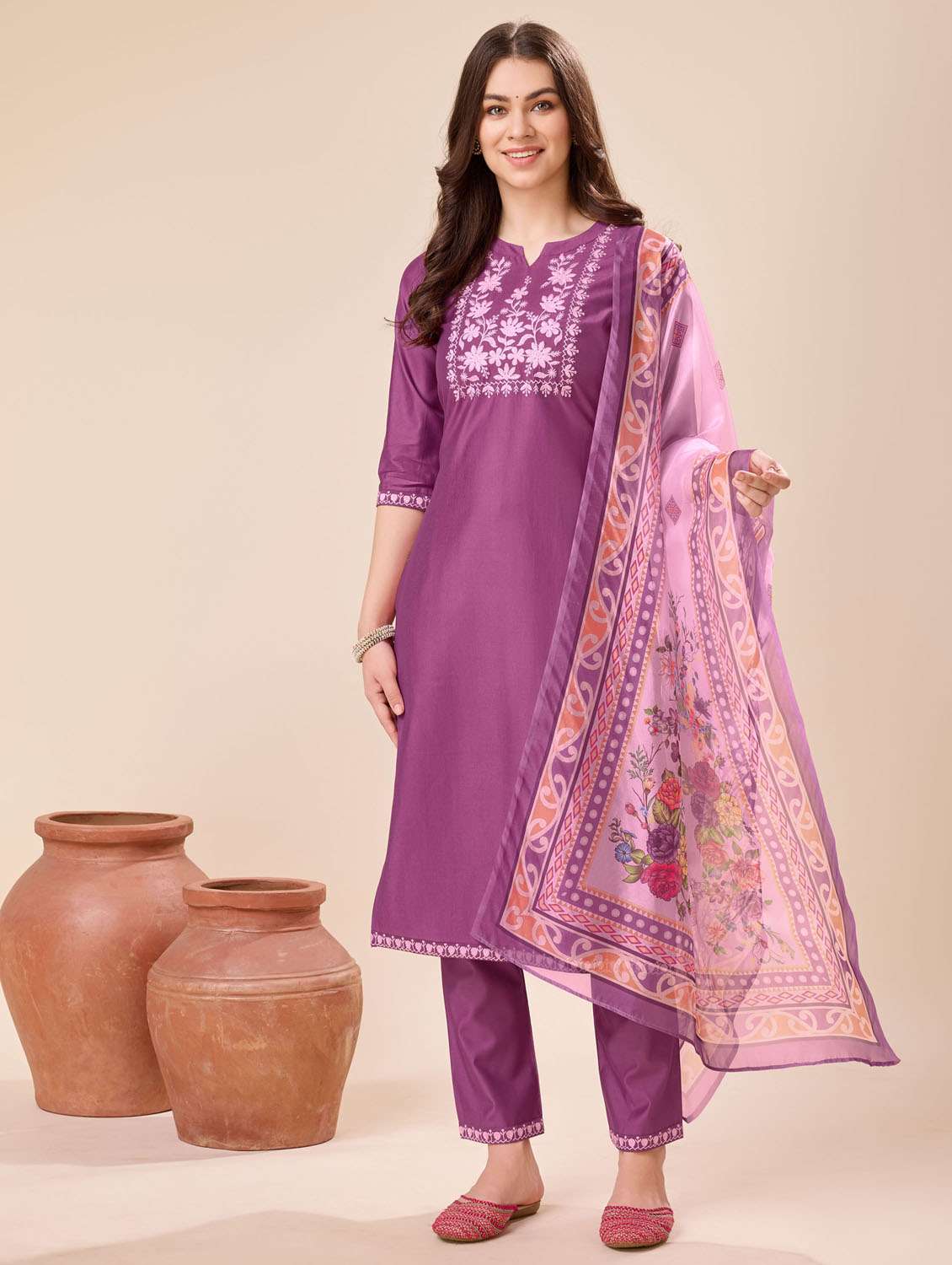 - Find gorgeous sets of ethnic wears in trending designs in purple colors suitable for festive wear of occasions.