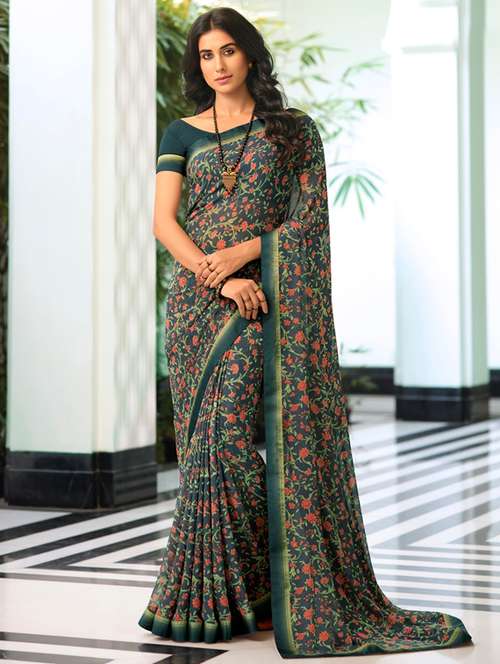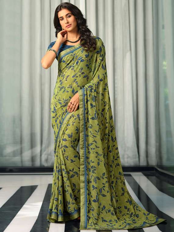 - » women's printed green colored saree with blouse