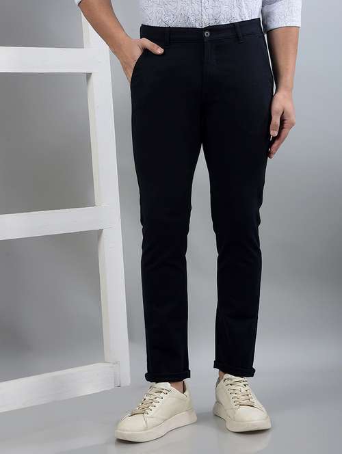 men solid mid rise chinos trouser