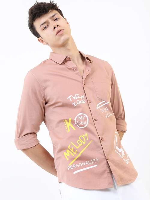 - Be a head turner by wearing this casual shirt from Ketch and grab it in peach colour.
