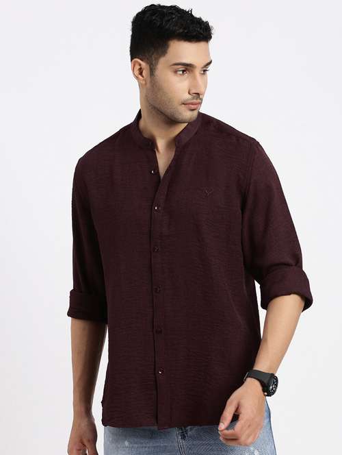 - » men solid mandrain neck long sleeve casual shirt