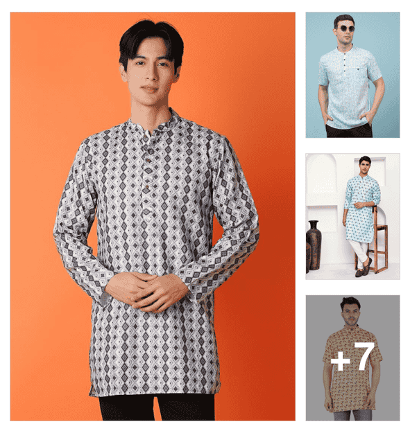 men embroidered mandarin neck long kurta