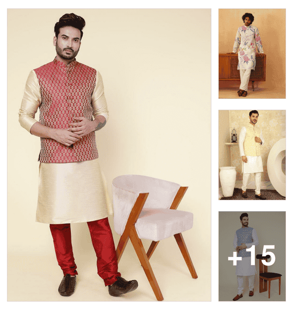 men long sleeve kurta and pyjama set