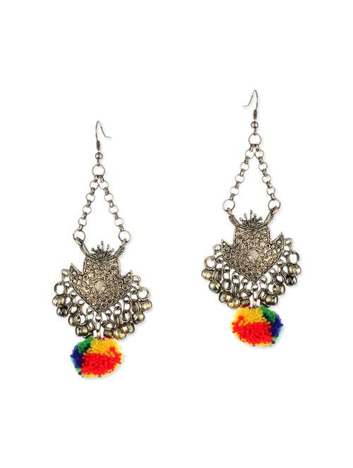multicoloured pom pom embellished metal earrings