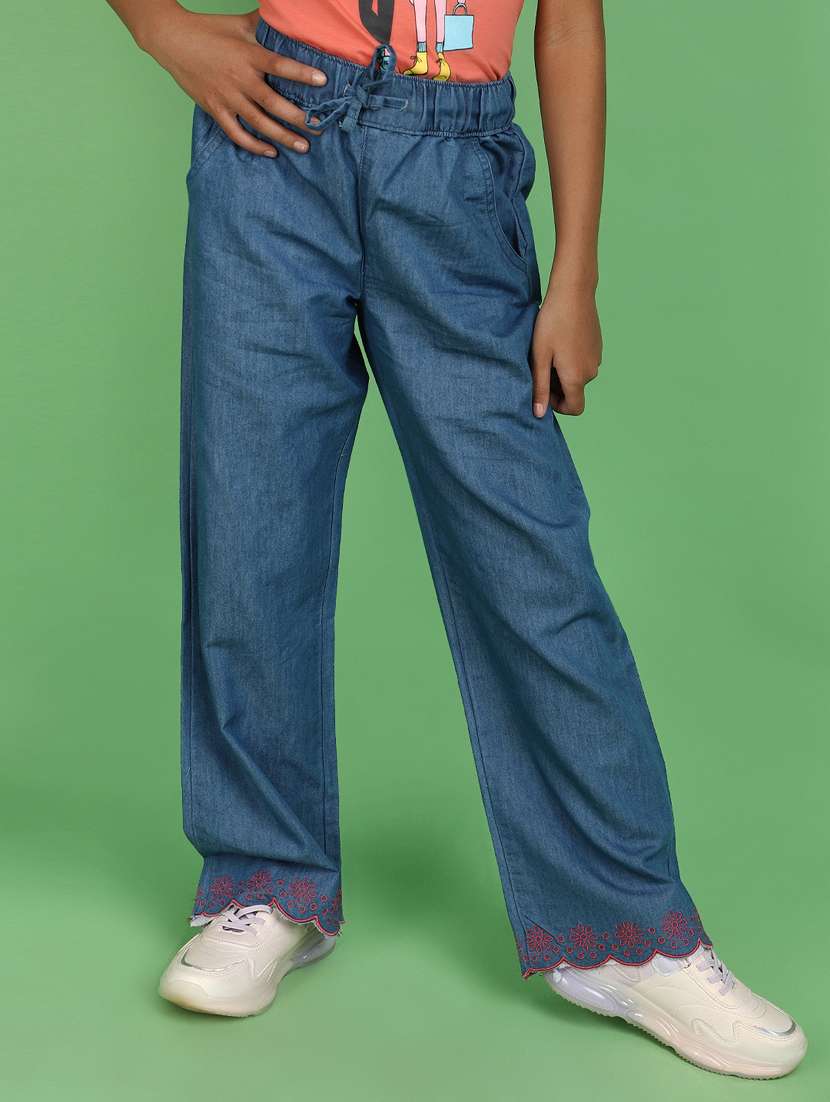 blue acrylic blend harem trouser