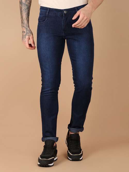 - » men mid rise plain denim jeans