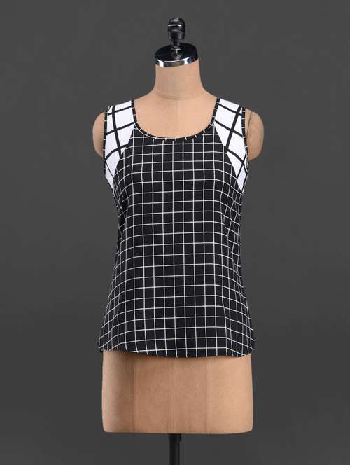 - » monochrome check sleeveless top