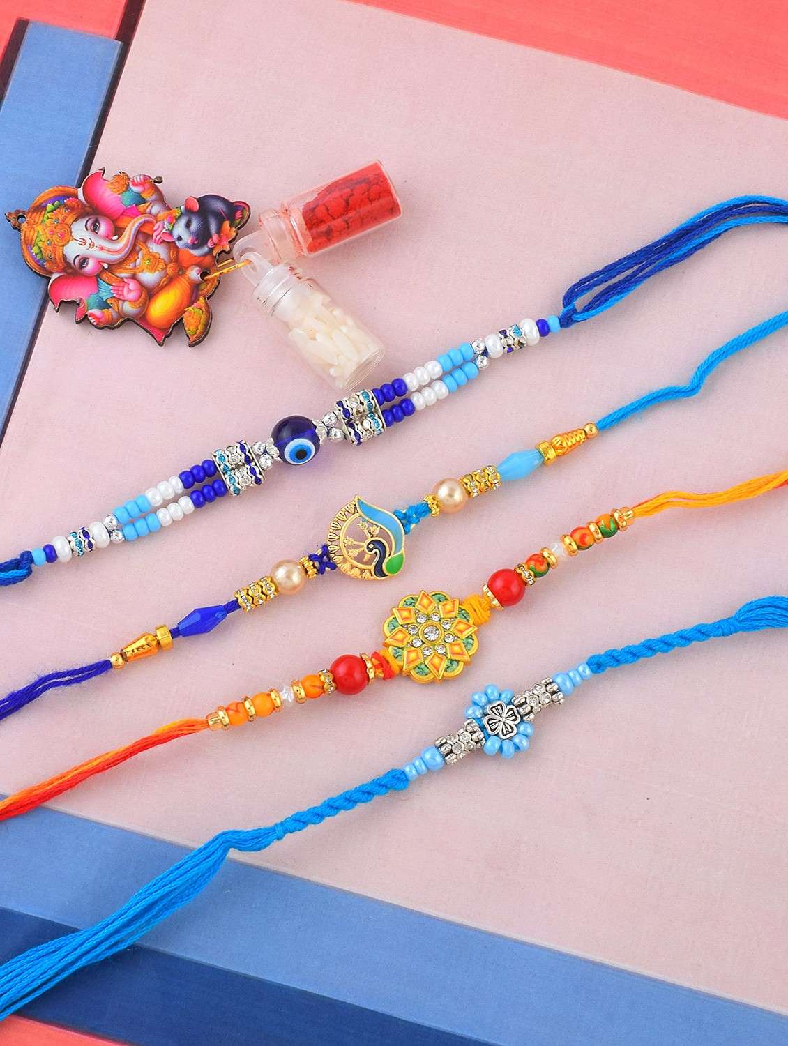 Rakhi for Bhaiya-Traditional 4 Rakhi combo for Rakshabandhan