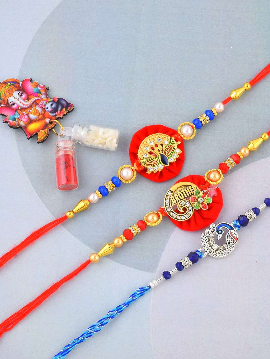 pack of 3 beaded rakhi set with roli and chawal - 21981764 -  Standard Image - 0 pack of 3 beaded rakhi set with roli and chawal - 21981764 -  Zoom Image - 0