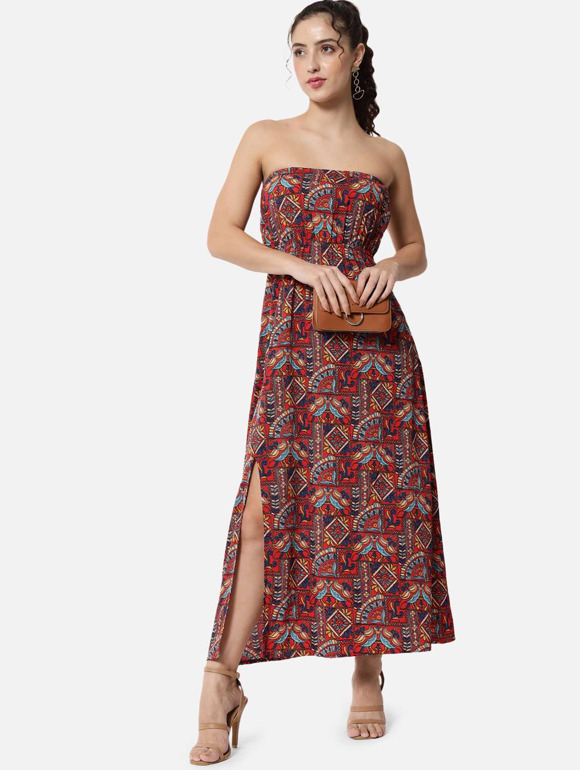 side slit printed tube dress
