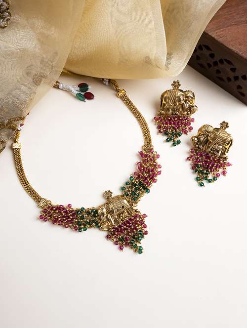 gold plated gaj necklace & earrings set - 22157559 -  Standard Image - 2 gold plated gaj necklace & earrings set - 22157559 -  Zoom Image - 2