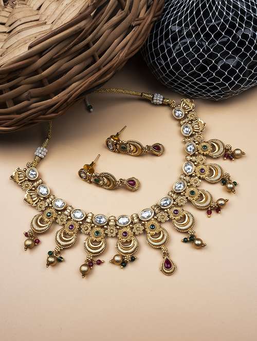 luxurious gold plated rajwadi necklace set - 22173835 - Very Small Image - 1