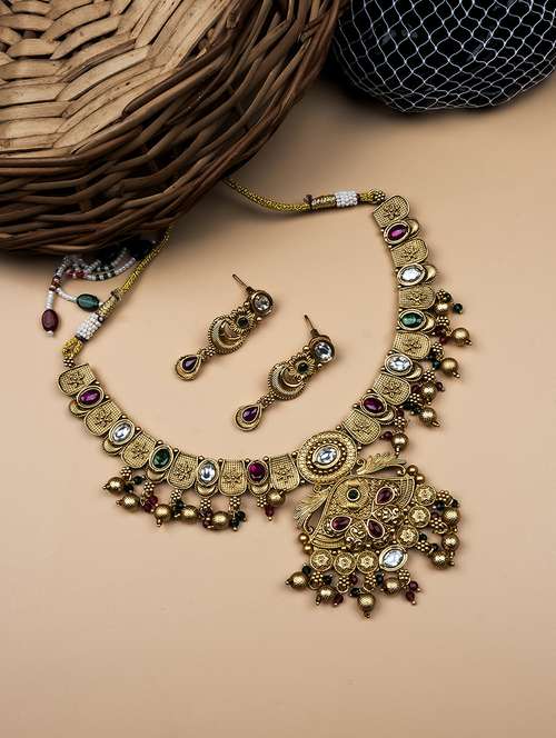 • Lay your hands on this exquisite jewellery set from StileAdda in gold colours.
