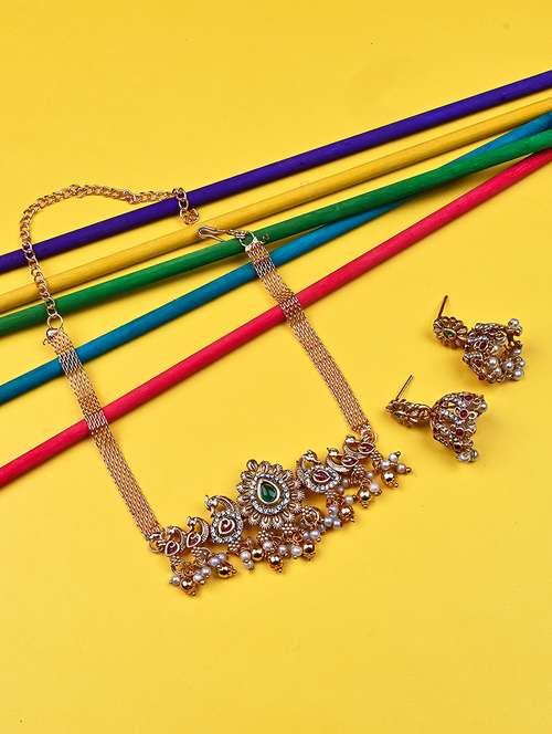 - Lay your hands on this exquisite jewellery set from StileAdda in gold colours.