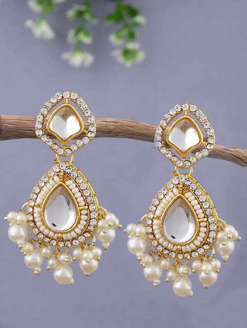 - » women white kundan work drop earrings
