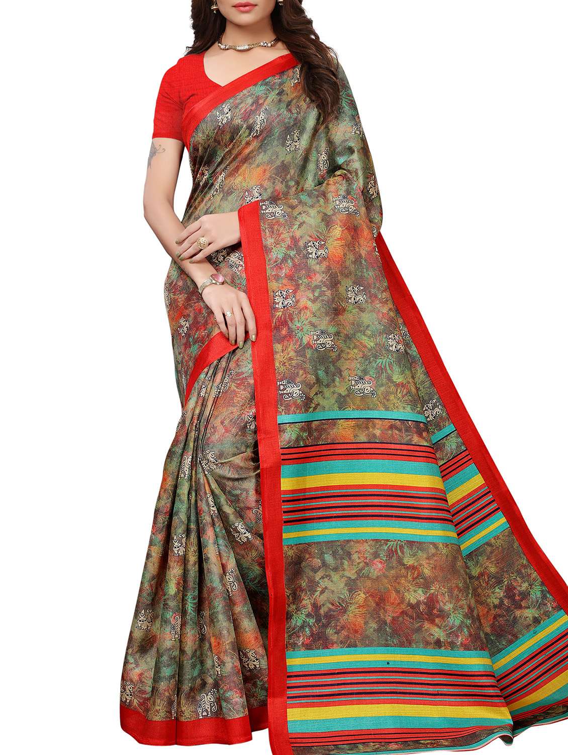 - » printed maysore art silk saree with blouse