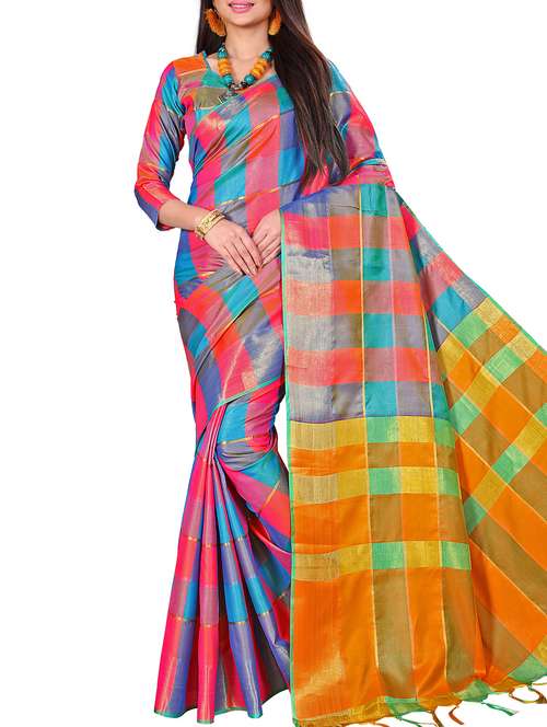 - » checkered zari motif tussar saree with blouse
