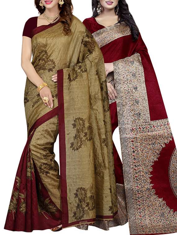 - » set of 2 multicolored bhagalpuri saree with blouse